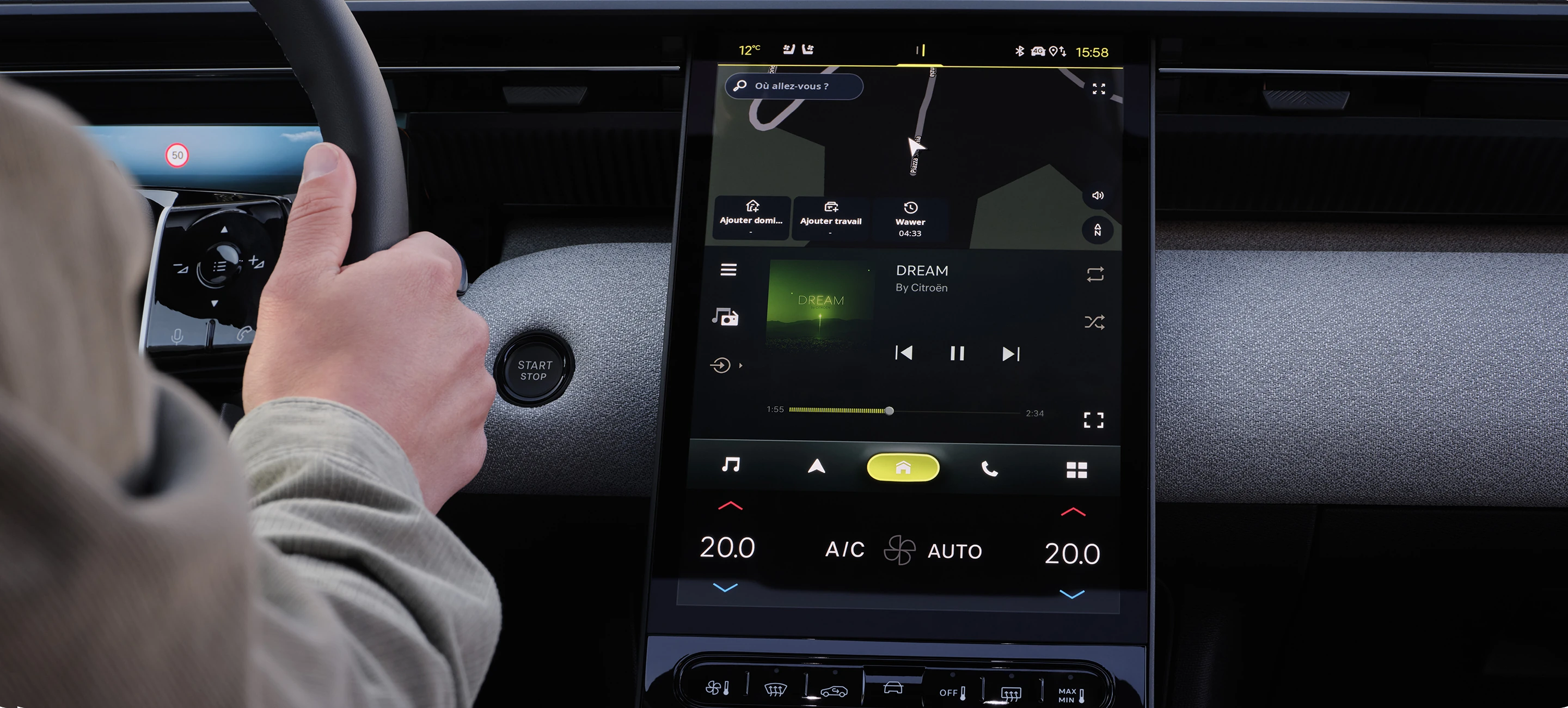 Jaunajā Citroën C5 Aircross ir 13" Waterfall tipa centrālais ekrāns. Ar savu iespaidīgi vieglo un vertikālo dizainu tas patiesi "peld" mērinstrumentu paneļa priekšā, pēc tam vienmērīgi nolaižas, nemanāmi savienojoties ar centrālo konsoli.